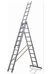 Максимальная высота 7,0 / 8,45 м. Максимальная высота стремянки 5,0 / 6,45 м. Лестницы трехсекционные (универсальные лестницы) - это лестницы, которые сочетают в себе сразу функции приставной лестницы, стремянки и двухсекционной лестницы. Эта лестница собрала в себе все преимущества односекционной и двухсекционной лестницы. Состоящая из трех частей она может использоваться в широком диапазоне высот. Имеется возможность использовать верхнюю секцию как отдельную небольшую приставную лестницу.