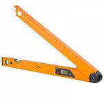 Электронный угломер. По встроенному датчику в поворотной части угломера происходит считывание угла, на который развернуты части угломера и результат отображается на ж/к дисплее. Зажимной винт позволяет "выносить в натуру" нужный угол - Вы просто разворачиваете угломер на нужный угол, контролируя значение по данным на ж/к дисплее, зажимаете зажимной винт и теперь прикладываете угломер к рабочим поверхностям и по угломеру выравниваете их.